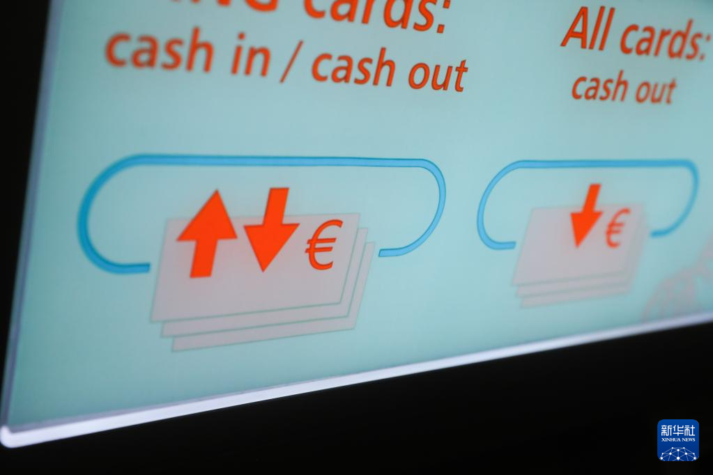 The sign of Euro is seen on an ATM in Brussels, Belgium, Dec. 30, 2021. Euro banknotes and coins were physically introduced into eurozone countries in circulation on Jan. 1, 2002.