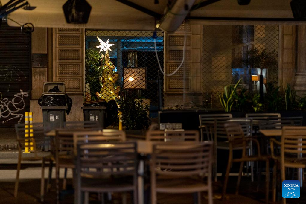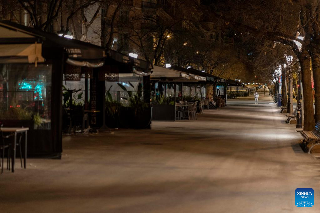 Photo taken on Dec. 29, 2021 shows the night view during curfew in Barcelona, Spain. (Photo by Joan Gosa/Xinhua)