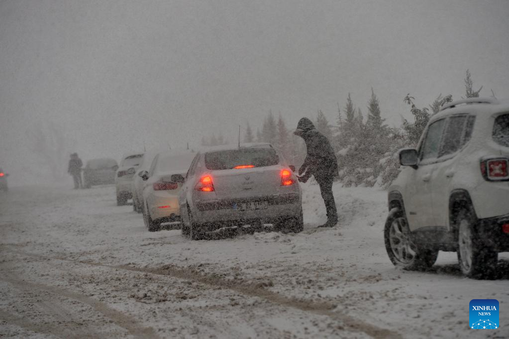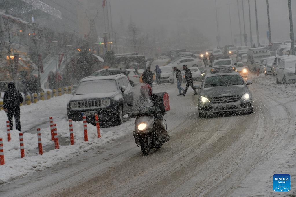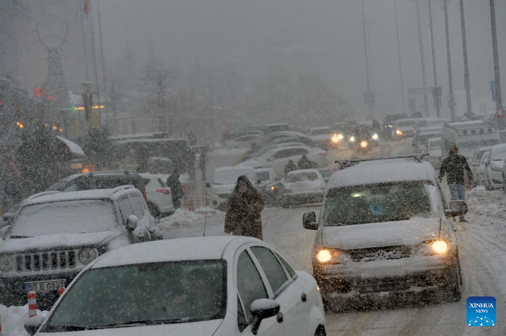 People drive in snowy weather in Ankara, Turkey, on Jan. 22, 2021. (Photo by Mustafa Kaya/Xinhua)