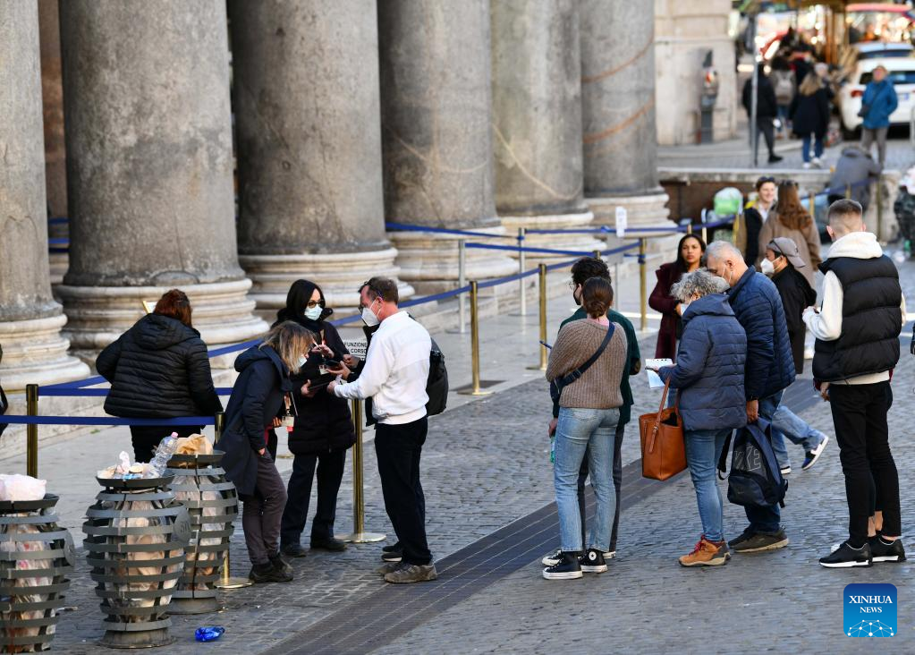 People wait in line to enter the Pantheon in Rome, Italy, on Feb. 11, 2022. (Xinhua/Jin Mamengni)