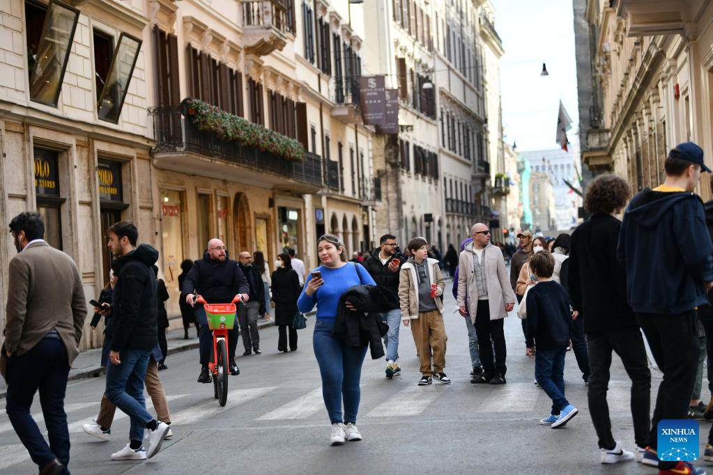 People walk on a street in Rome, Italy, on Feb. 11, 2022. (Xinhua/Jin Mamengni)