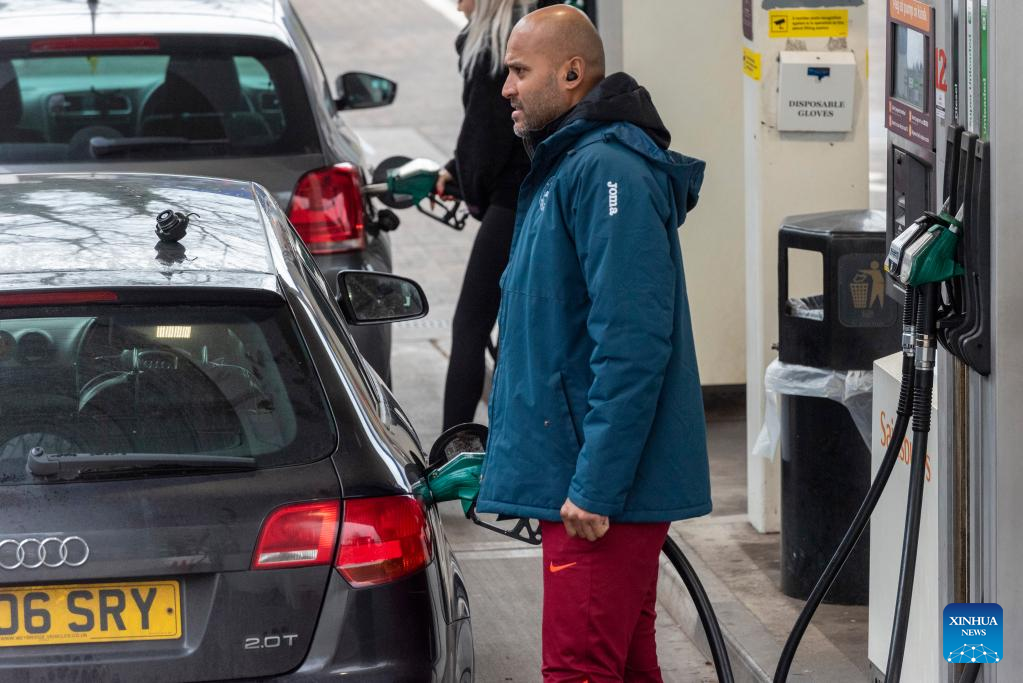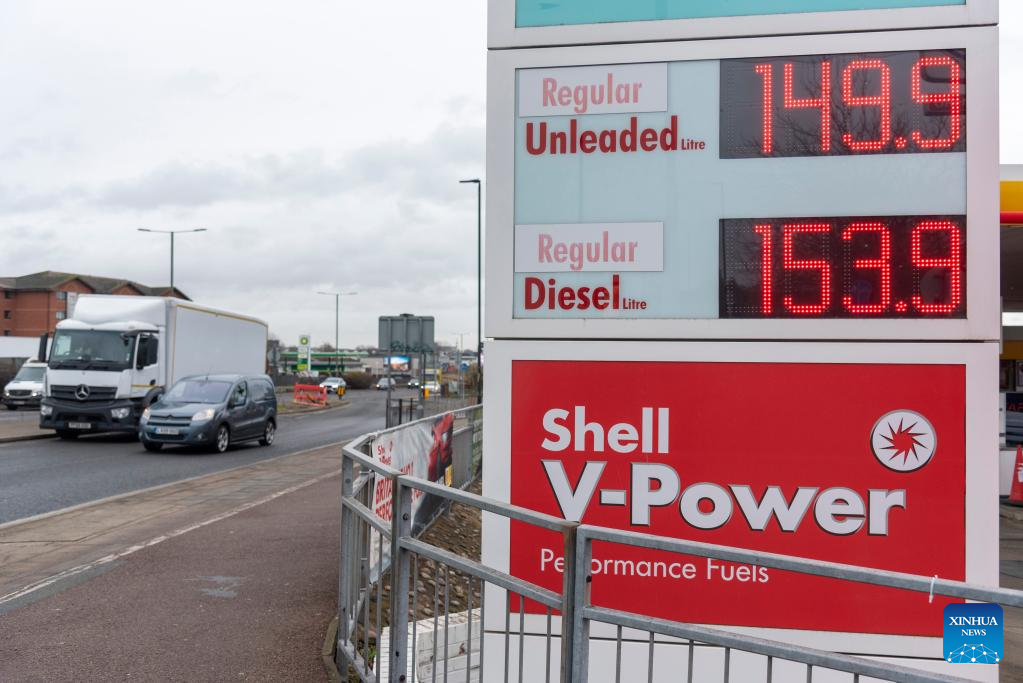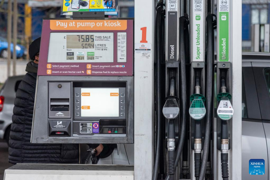 LONDON, Feb. 14 (Xinhua) -- The prices of petrol and diesel in Britain have both posted new record highs over the weekend, pushing the cost of living crisis even further for British families, showed the latest data released on Monday.