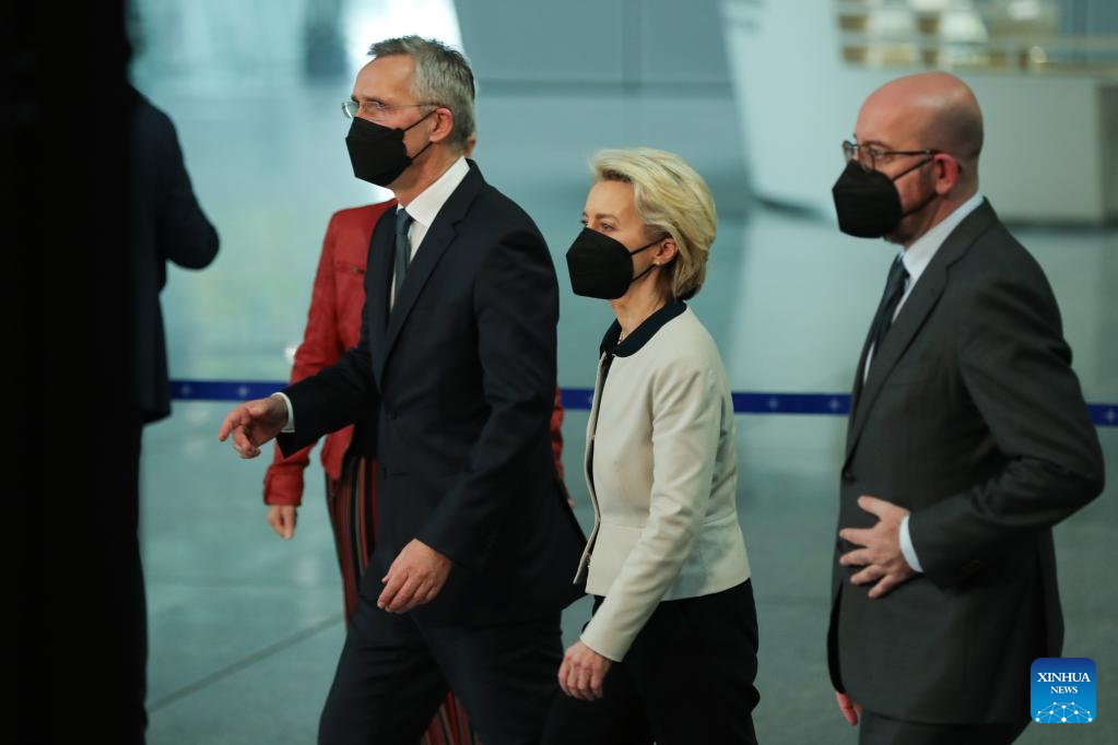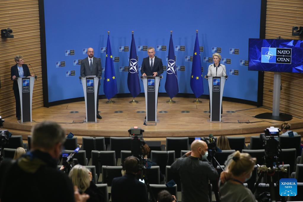 BRUSSELS, Feb. 24 (Xinhua) -- Allies of the North Atlantic Treaty Organization (NATO) agreed to further beef up its forces on its eastern flank near Ukraine but it has no intention of sending troops into Ukraine, NATO's Secretary-General Jens Stoltenberg said on Thursday.