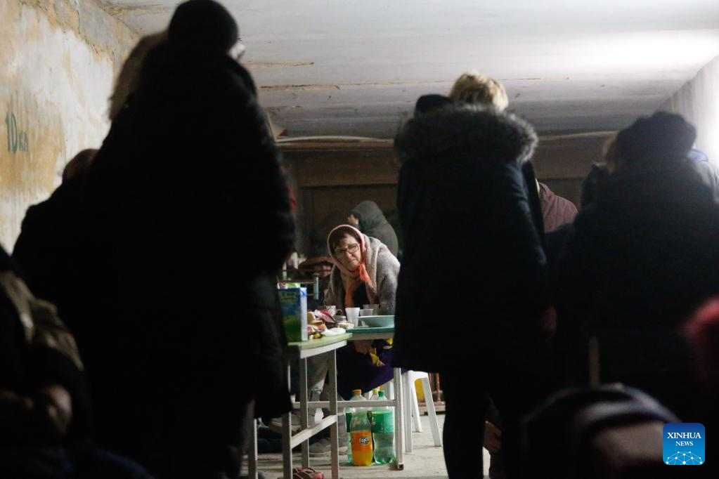 People are seen in a bomb shelter in Donetsk, March 1, 2022. (Photo by Victor/Xinhua)