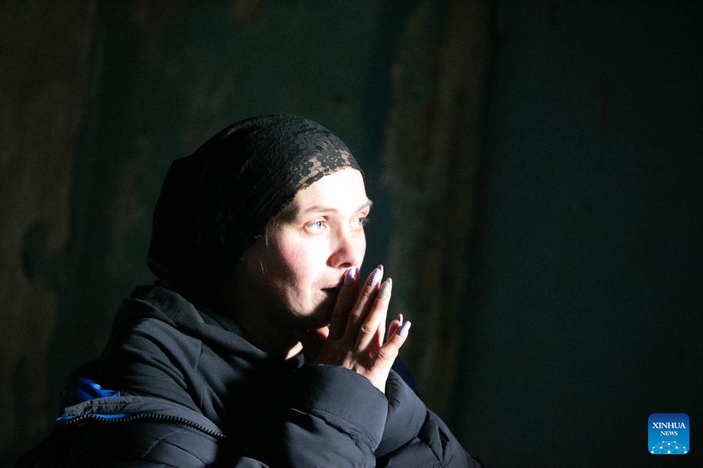 A woman is seen in a bomb shelter in Donetsk, March 1, 2022. (Photo by Victor/Xinhua)