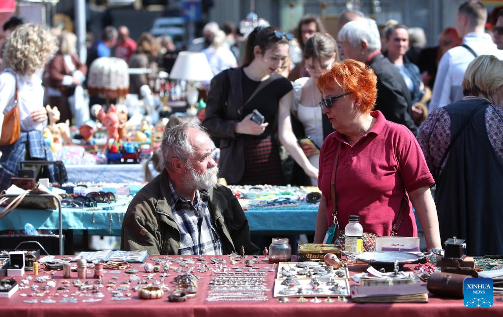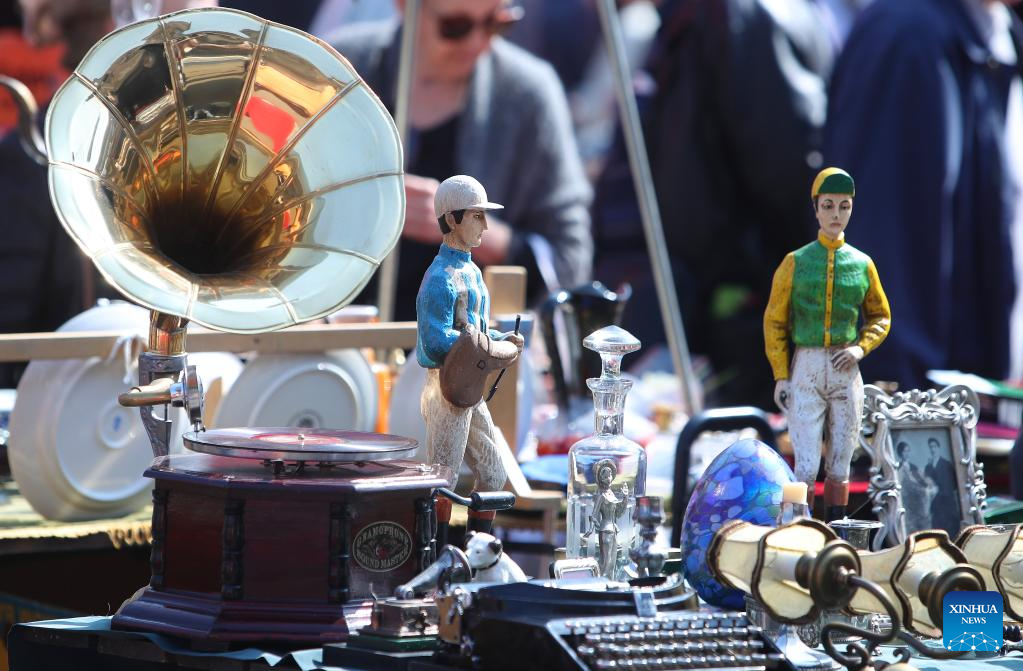 Photo taken on March 27, 2022 shows items for sale at the antiques fair on the British Square in Zagreb, Croatia. (Sanjin Strukic/PIXSELL via Xinhua)