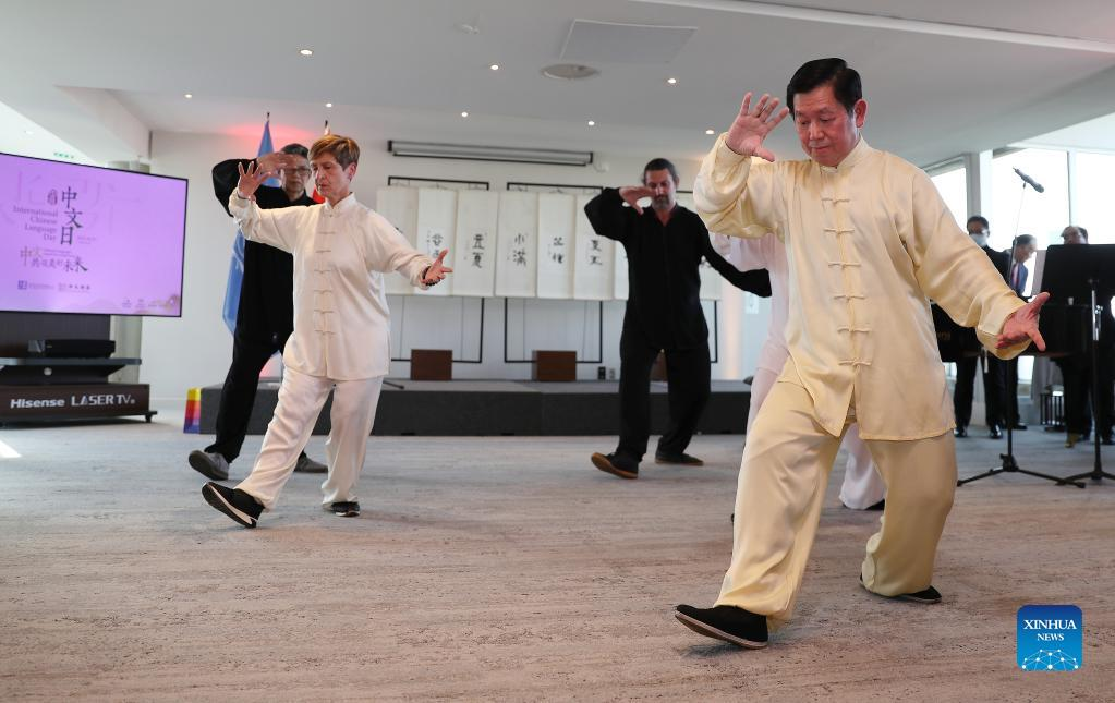 Participants perform during the events celebrating the 2022 United Nations (UN) Chinese Language Day at the headquarters of UNESCO in Paris, France, April 20, 2022. The UN Chinese Language Day is observed on April 20 every year since 2010, celebrating the language's contribution to the world while encouraging more people to learn it. (Xinhua/Gao Jing)