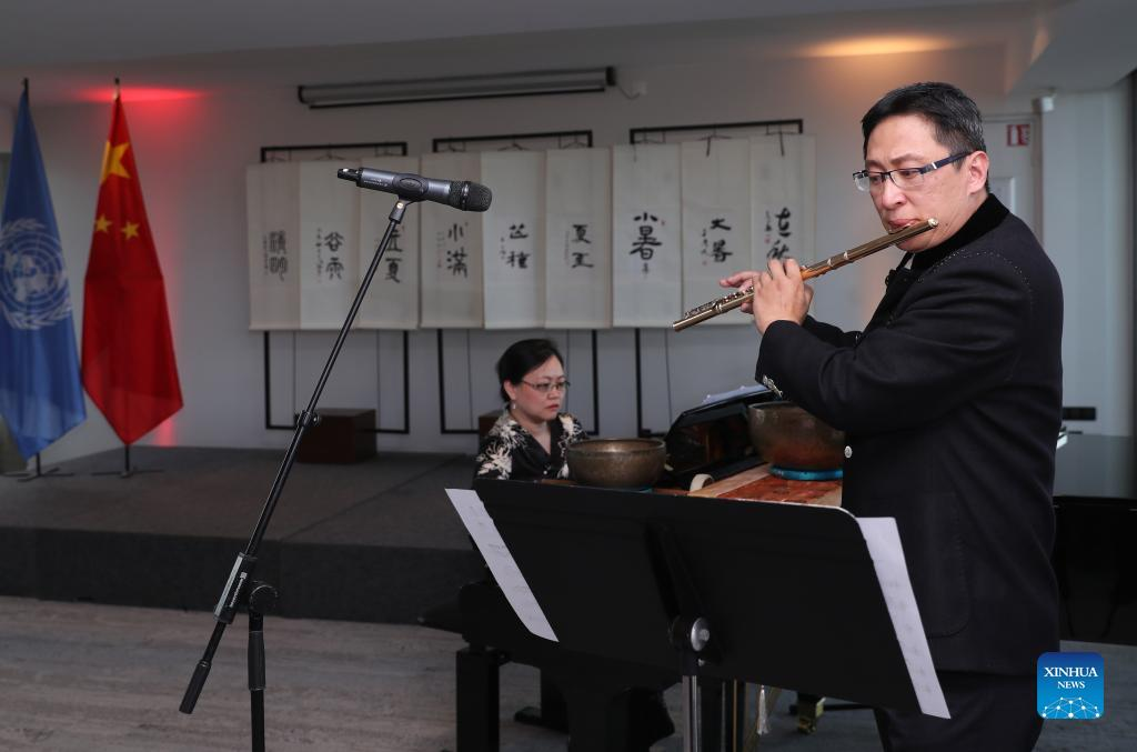 An artist performs during the events celebrating the 2022 United Nations (UN) Chinese Language Day at the headquarters of UNESCO in Paris, France, April 20, 2022. The UN Chinese Language Day is observed on April 20 every year since 2010, celebrating the language's contribution to the world while encouraging more people to learn it. (Xinhua/Gao Jing)