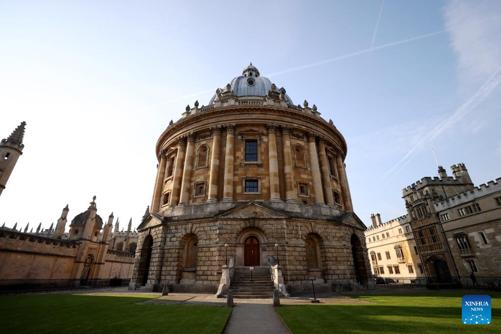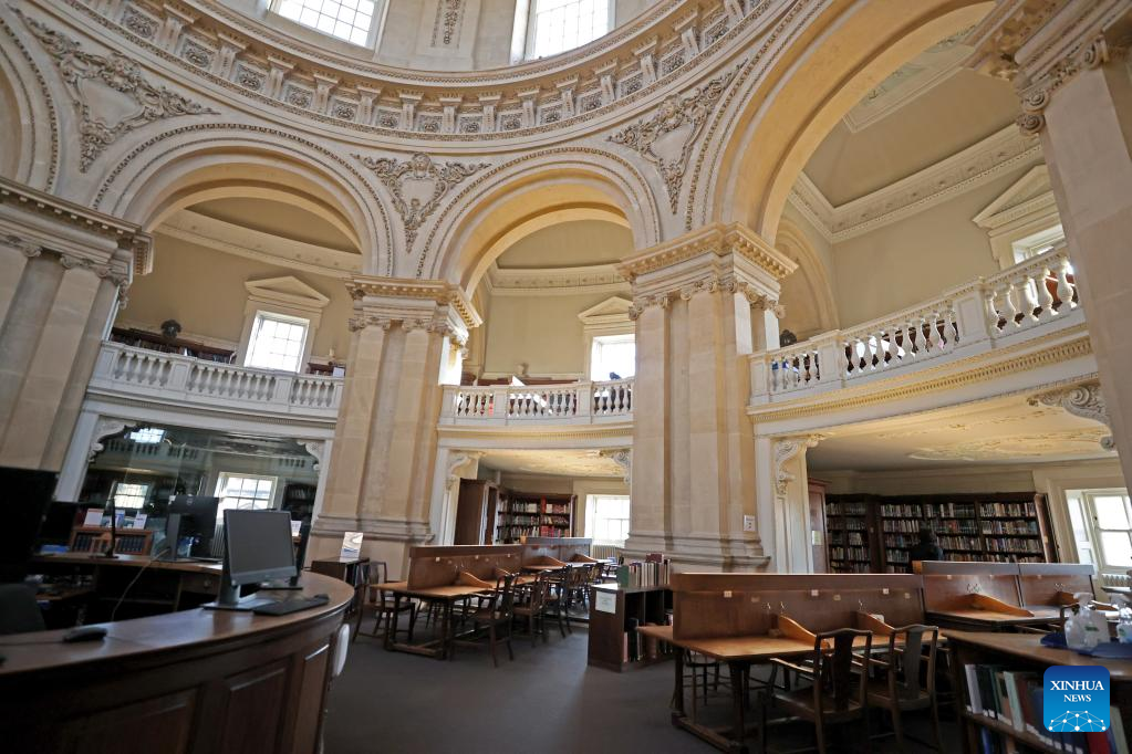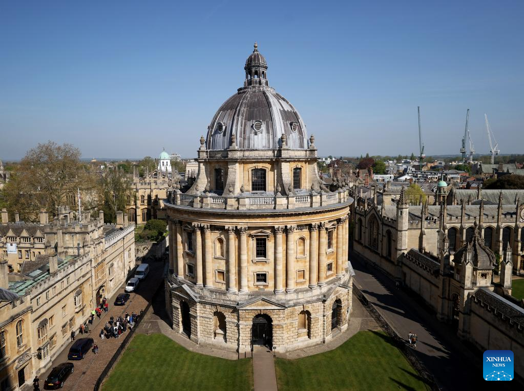 Photo taken on April 21, 2022 shows a view of the Radcliffe Camera of the Bodleian Libraries in the University of Oxford, Britain. As the library service supporting the University of Oxford, Bodleian Libraries include the principal University library, the Bodleian Library, which has been a library of legal deposit for 400 years, as well as 27 other libraries across Oxford including major research libraries and faculty, department and institute libraries.
