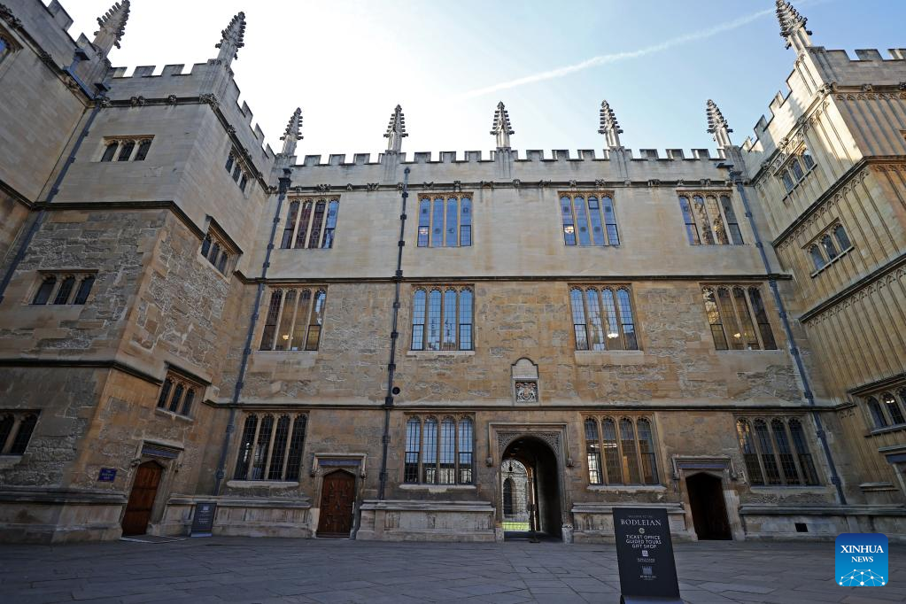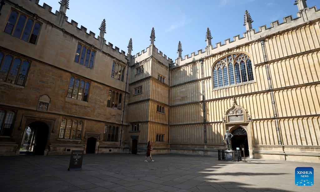 Photo taken on April 21, 2022 shows an exterior view of the Bodleian Libraries in the University of Oxford, Britain. As the library service supporting the University of Oxford, Bodleian Libraries include the principal University library, the Bodleian Library, which has been a library of legal deposit for 400 years, as well as 27 other libraries across Oxford including major research libraries and faculty, department and institute libraries.