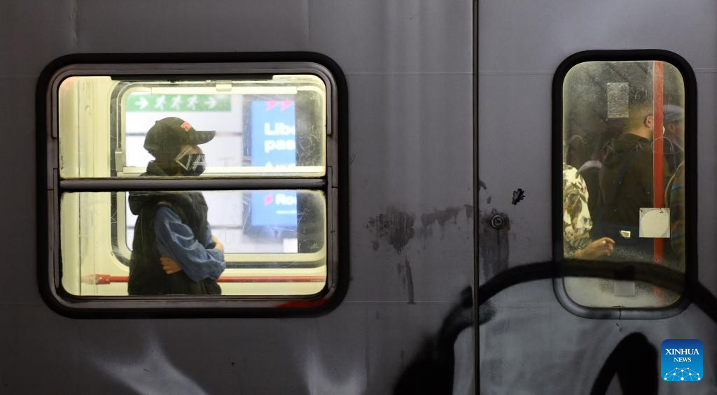 People take the subway at a metro station in Rome, Italy, May 1, 2022. Starting from May 1, people in Italy are no longer required to show green passes when entering bars, restaurants, health centers, gyms, night clubs and other places, while still obligated to wear face masks on public transport and in some indoor venues until at least June 15. (Xinhua/Jin Mamengni)