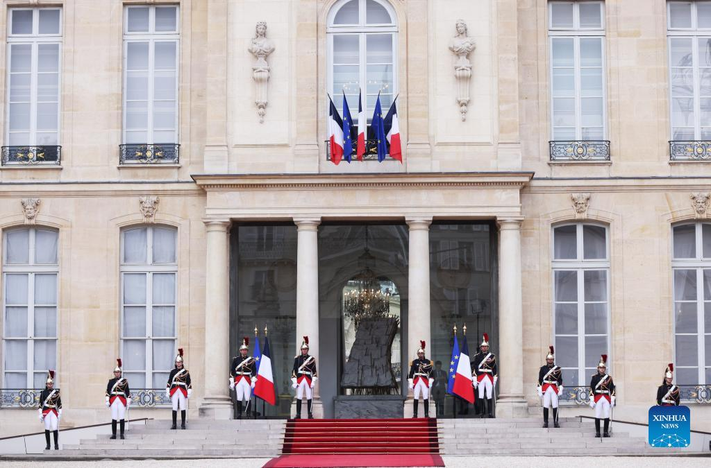 The Elysee Palace is seen before the investiture ceremony of Emmanuel Macron as French President in Paris, France, May 7, 2022. Macron won the second round of the election held on April 24 with an absolute majority of 18,768,638 votes (58.55 percent of the valid ballots cast). According to law, Macron's second term must begin no later than May 14. (Xinhua/Gao Jing)