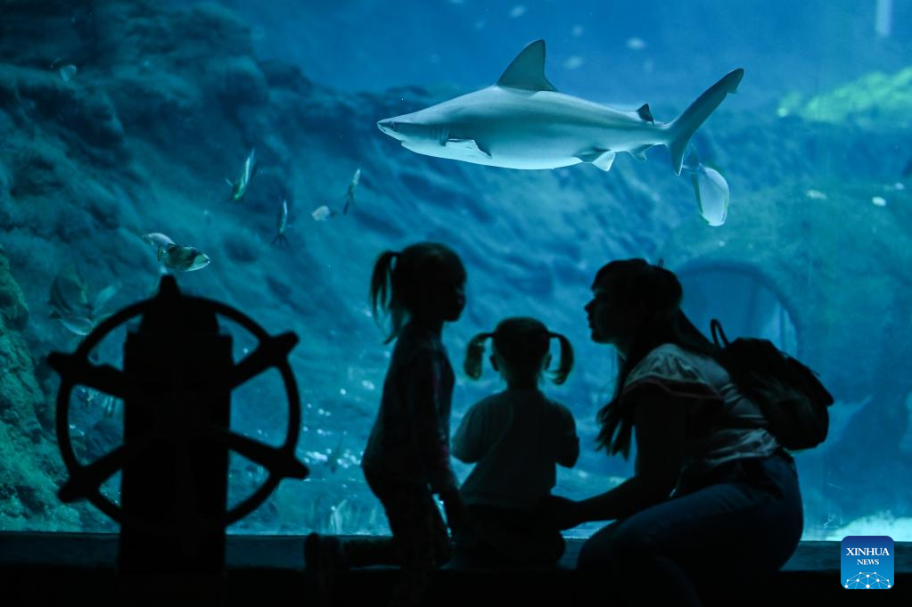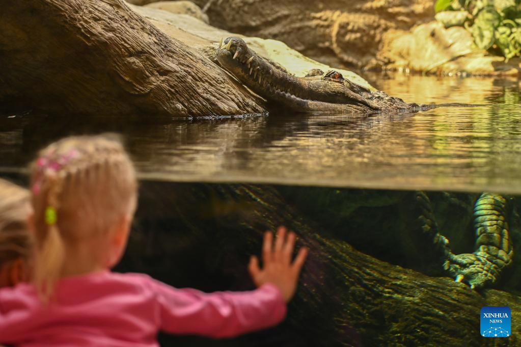 People visit the aquarium at the newly-built pavilion of Orientarium in the Zoo Lodz, Poland, on May 5, 2022. (Photo by Alexey Vitvitsky/Xinhua)