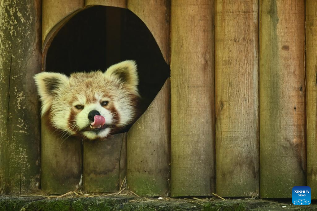 A red panda is seen at the newly-built pavilion of Orientarium in the Zoo Lodz, Poland, on May 5, 2022. (Photo by Alexey Vitvitsky/Xinhua)