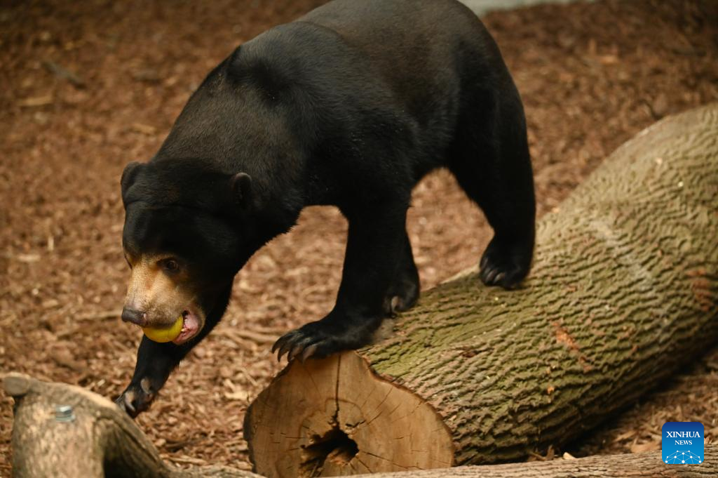 Alayan sun bear is seen at the newly-built pavilion of Orientarium in the Zoo Lodz, Poland, on May 5, 2022. (Photo by Alexey Vitvitsky/Xinhua)