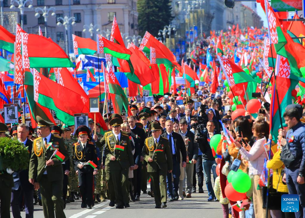 MINSK, May 9 (Xinhua) -- Belarus hosted a series of commemorative events on Monday, dedicated to the 77th anniversary of the Victory of the Soviet Union in the Eastern Front of World War II.