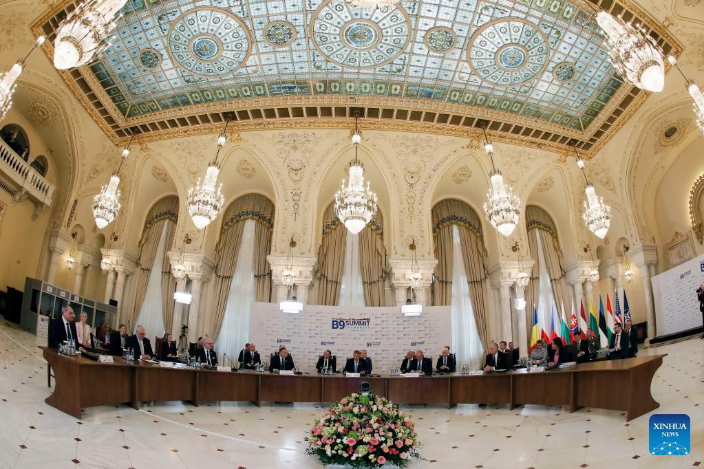 Photo taken on June 10, 2022 shows a plenary session of Bucharest 9 Summit in Bucharest, Romania. Bucharest 9 (B9) Summit participants want a consolidated NATO presence on the eastern flank, Romanian President Klaus Iohannis said on Friday. (Photo by Cristian Cristel/Xinhua)