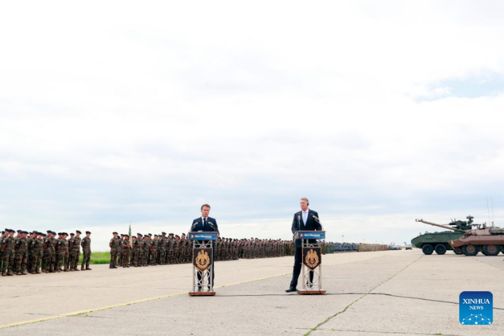BUCHAREST, June 15 (Xinhua) -- The Ukrainian president will have to negotiate with Russia, and the Europeans will also be present at the negotiating table, bringing security guarantees, visiting French President Emmanuel Macron said on Wednesday at a NATO base in southeastern Romania.