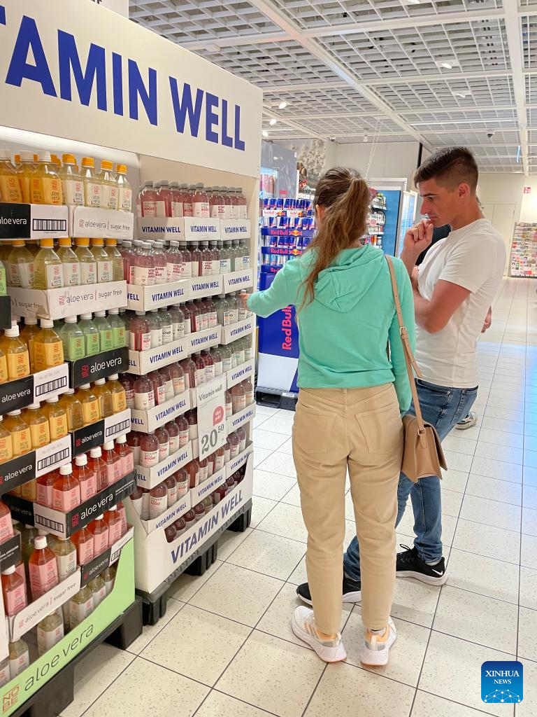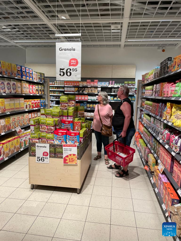 Customers shop at a supermarket in Stockholm, Sweden, on July 14, 2022. (Xinhua/Fu Yiming)
