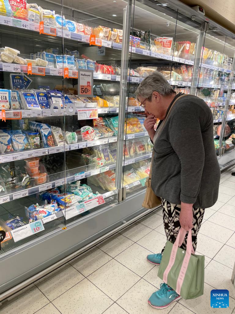 A customer shops at a supermarket in Stockholm, Sweden, on July 14, 2022. (Xinhua/Fu Yiming)