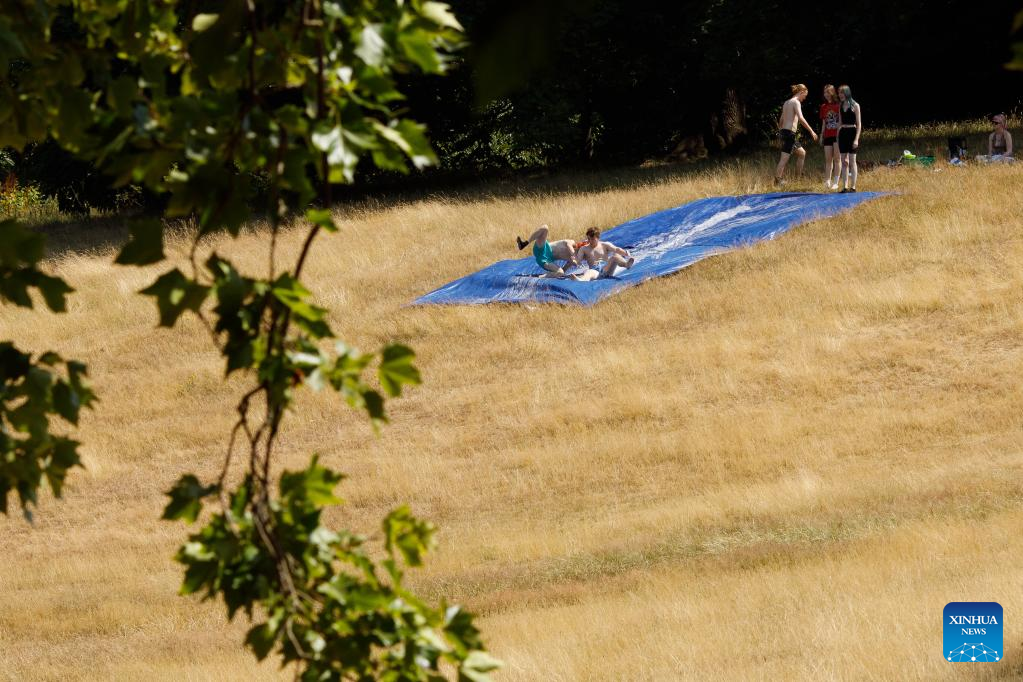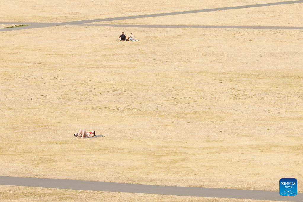 LONDON, July 18 (Xinhua) -- Much of the United Kingdom (UK) was gripped by scorching weather on Monday, with no respite from the sweltering heat forecast before the middle of this week. The authorities have warned of travel disruptions and suggested people work from home in the coming days.