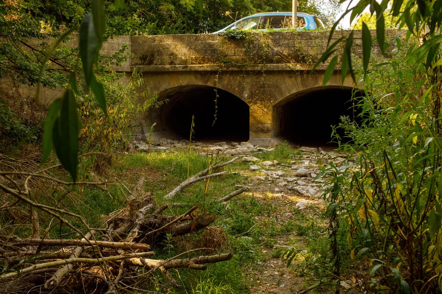 Photo taken on Aug. 14, 2022 shows the view of a dried riverbed near the source of the River Thames, southwest of the town of Cirencester, Britain. (Photo by Tim Ireland/Xinhua)