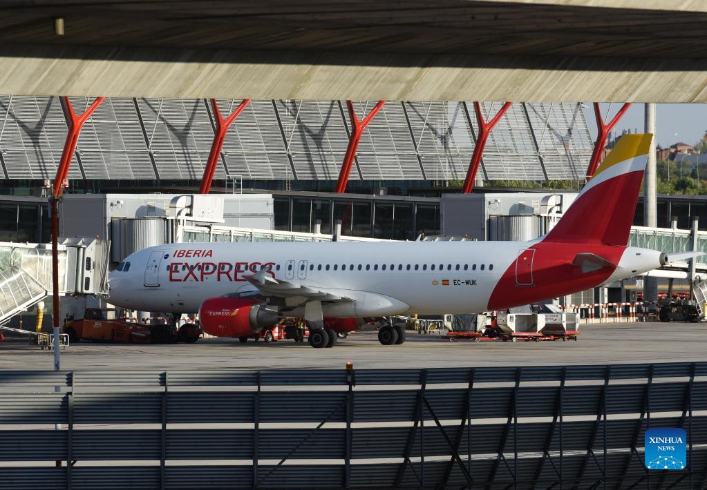 Photo taken on Aug. 29, 2022 shows a flight of Iberia Express at Adolfo-Suarez-Barajas Airport in Madrid, Spain. At least seven flights had to be diverted from Madrid's Adolfo-Suarez-Barajas Airport on Monday due to the presence of drones in the area. Monday was another difficult day for air travelers in Spain, due to strikes by the cabin crew of low-cost airlines Ryanair and Iberia Express, and the pilots of EasyJet. The ongoing actions calling for better working conditions (in the case of Ryanair and Iberia Express) and a return to pre-pandemic conditions (Easyjet pilots), led to the cancellation of 14 flights (10 from Madrid) on Monday. A further 28 were delayed. (Photo by Gustavo Valiente/Xinhua)