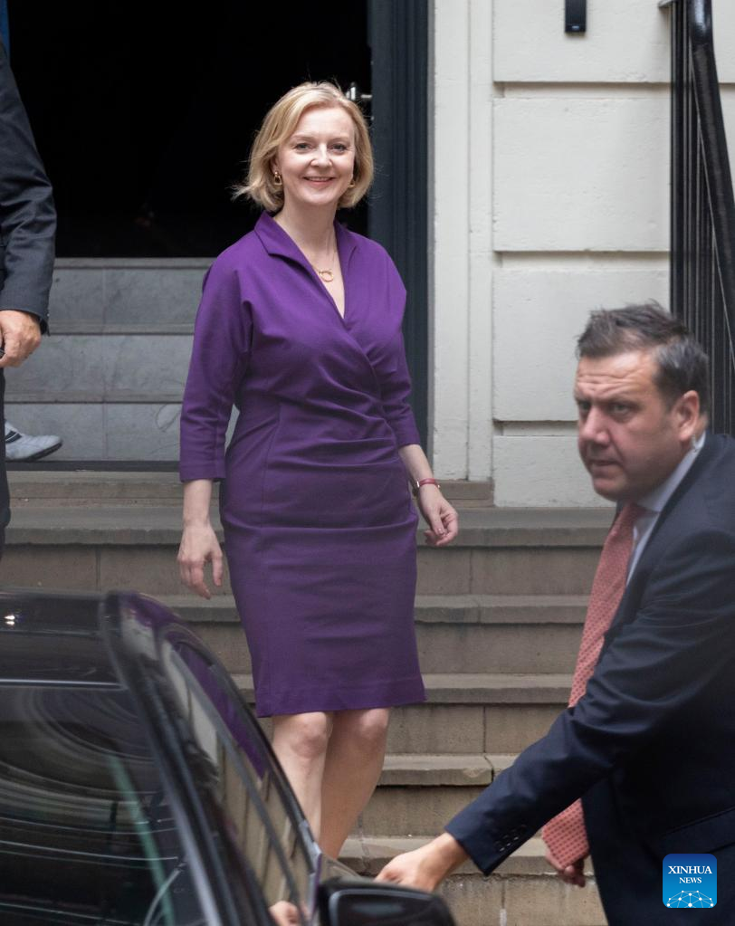 Liz Truss leaves the Conservative Party Headquarters in London, Britain, on Sept. 5, 2022. Liz Truss, foreign secretary of the United Kingdom (UK), has won the ruling Conservative Party's leadership contest and will replace Boris Johnson as the country's new prime minister. (Photo by Belinda Jiao/Xinhua)