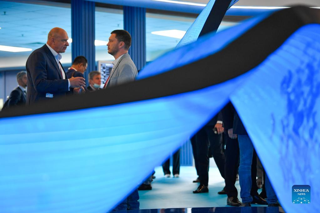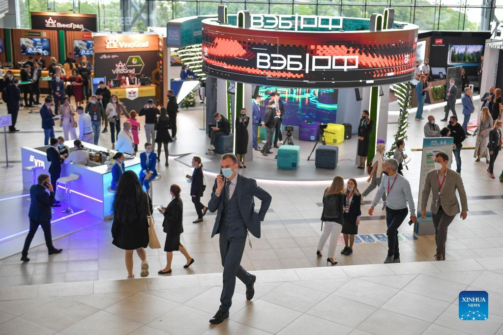 People attend the 7th Eastern Economic Forum (EEF) in Vladivostok, Russia, Sept. 5, 2022. The 7th EEF kicked off in Russia's far eastern city of Vladivostok on Monday. (Photo by Alexander Zemlianichenko Jr/Xinhua)
