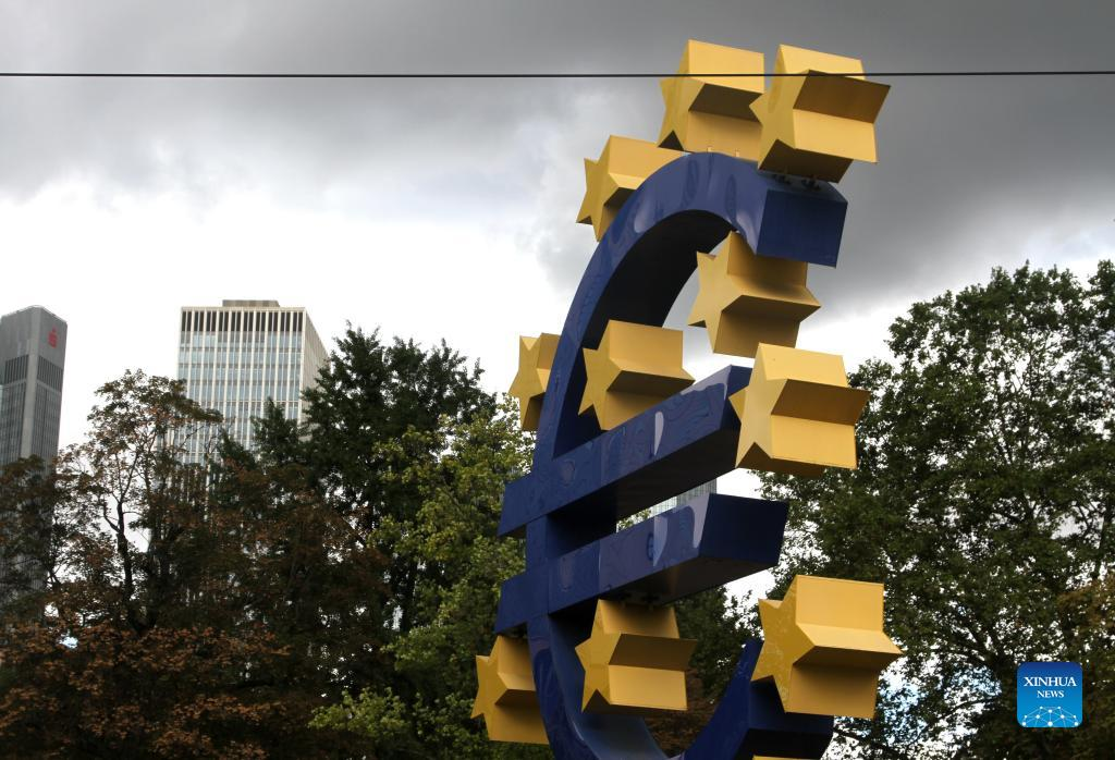 Photo taken on Sept. 8, 2022 shows the Euro sculpture in Frankfurt, Germany. The European Central Bank (ECB) on Thursday raised key interest rates by 75 basis points (bp), the second such hike after a 50 bp increase in July. (Xinhua/Shan Weiyi)