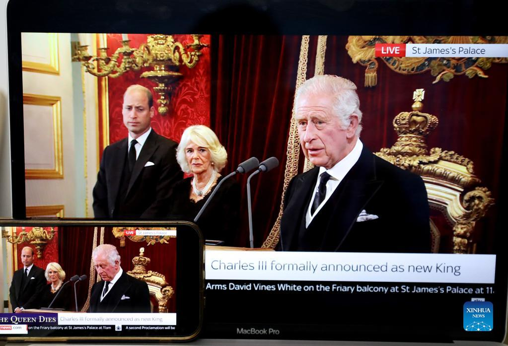 LONDON, Sept. 10 (Xinhua) -- King Charles III was formally proclaimed Britain's new monarch at a meeting of the Accession Council at St James's Palace on Saturday.