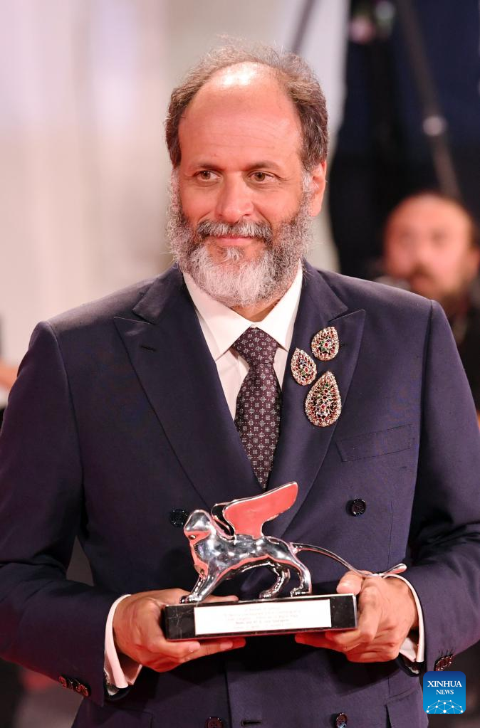 Director Luca Guadagnino poses with the Silver Lion for Best Director during the 79th Venice International Film Festival in Venice, Italy, Sept. 10, 2022.