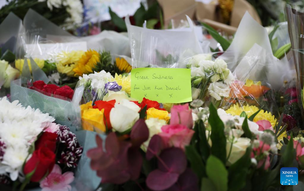 A note is seen amid flowers commemorating the late Queen Elizabeth II at Green Park in London, Britain, Sept. 10, 2022. Queen Elizabeth II, Britain's longest-reigning monarch in history, has died aged 96, Buckingham Palace announced on Thursday. (Xinhua/Li Ying)