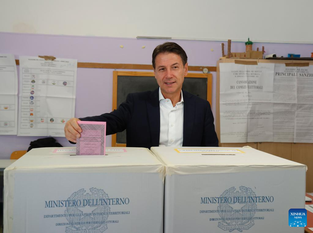 Giuseppe Conte, former Italian prime minister and leader of the Five Star Movement, casts a ballot at a polling station in Rome, Italy, Sept. 25, 2022. (Str/Xinhua)