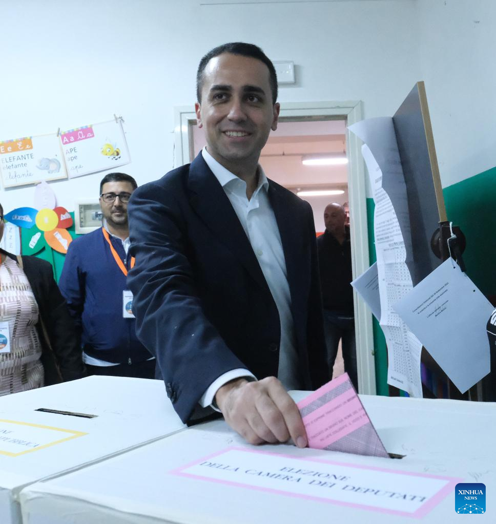 Italian Foreign Minister Luigi Di Maio casts a ballot at a polling station in Naples, Italy, Sept. 25, 2022. (Str/Xinhua)
