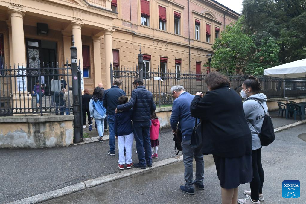 Residents line up to vote at a polling station in Bologna, Italy, Sept. 25, 2022. (Photo by Gianni Schicchi/Xinhua)