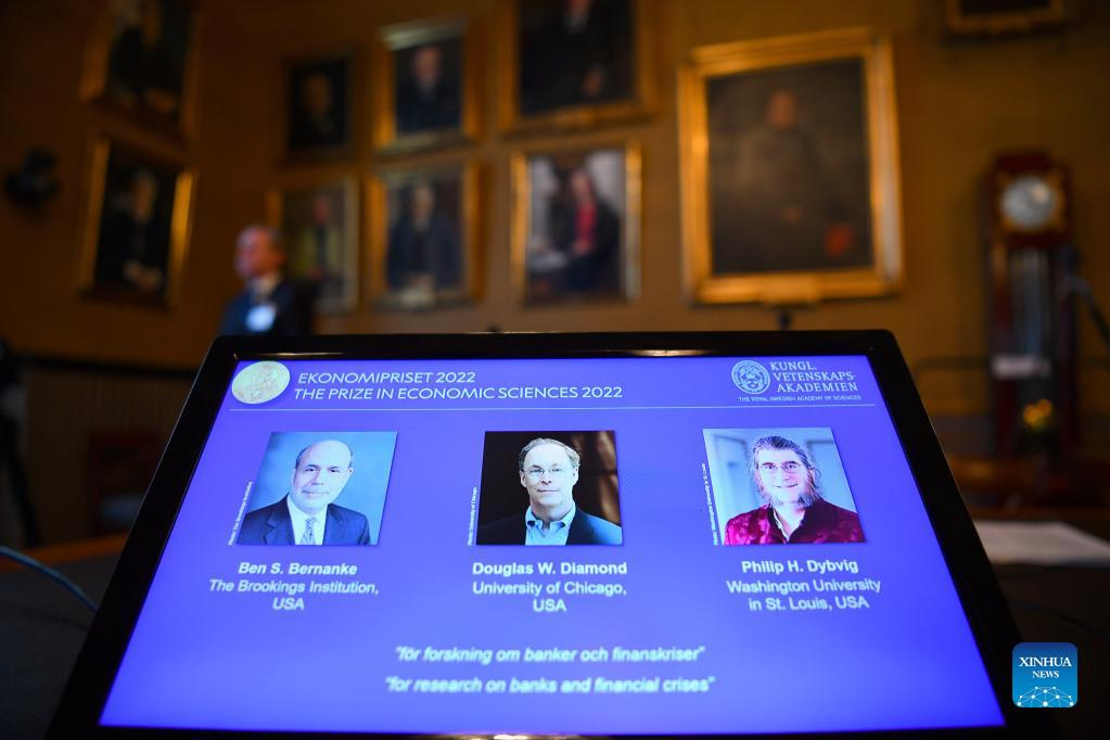 STOCKHOLM, Oct. 10 (Xinhua) -- The Royal Swedish Academy of Sciences on Monday decided to award the 2022 Sveriges Riksbank Prize in Economic Sciences in Memory of Alfred Nobel to Ben S. Bernanke, Douglas W. Diamond and Philip H. Dybvig "for research on banks and financial crises."