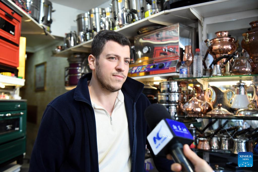 Hakan Cetin, co-owner of a stove store, is interviewed with Xinhua at a stove bazaar in Istanbul, Türkiye, on Oct. 11, 2022. With consecutive hikes in the past six months, natural gas prices have increased by 85 percent in the country, forcing more and more Istanbul residents to consider transforming their heating systems based on natural gas into wood and coal-burning stoves. (Xinhua/Shadati)