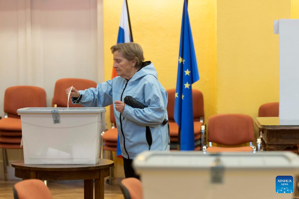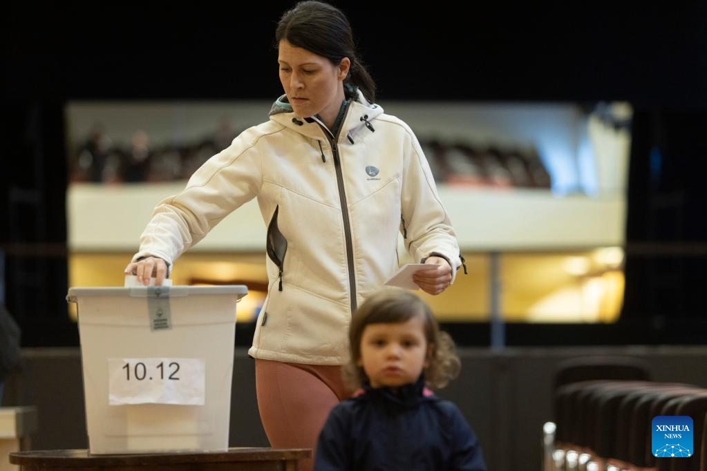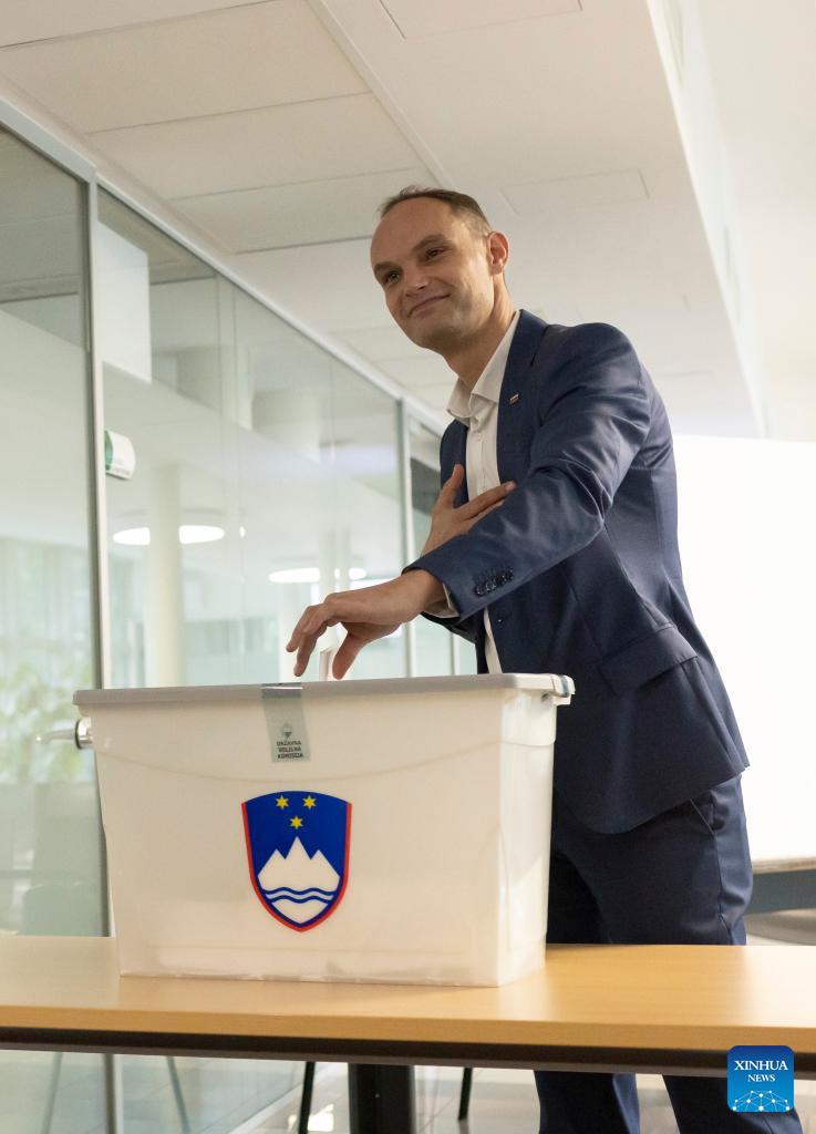 Presidential candidate Anze Logar casts ballot during the presidential election at a polling station in Ljubljana, Slovenia, Oct. 23, 2022. Slovenia is due to hold the second round of presidential election on Nov. 13 after no candidate got majority in the first round held on Sunday. (Photo by Zeljko Stevanic/Xinhua)