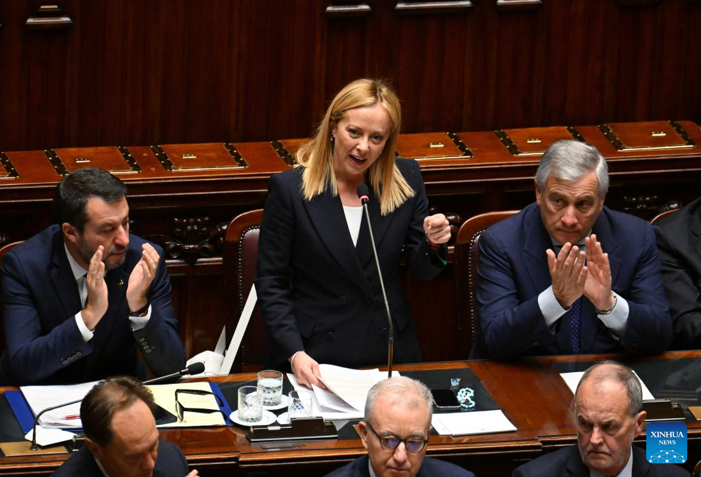 ROME, Oct. 25 (Xinhua) -- The new Italian cabinet led by Prime Minister Giorgia Meloni won the confidence of the lower house of parliament on Tuesday, with 235 votes in favor, 154 against and five abstentions.