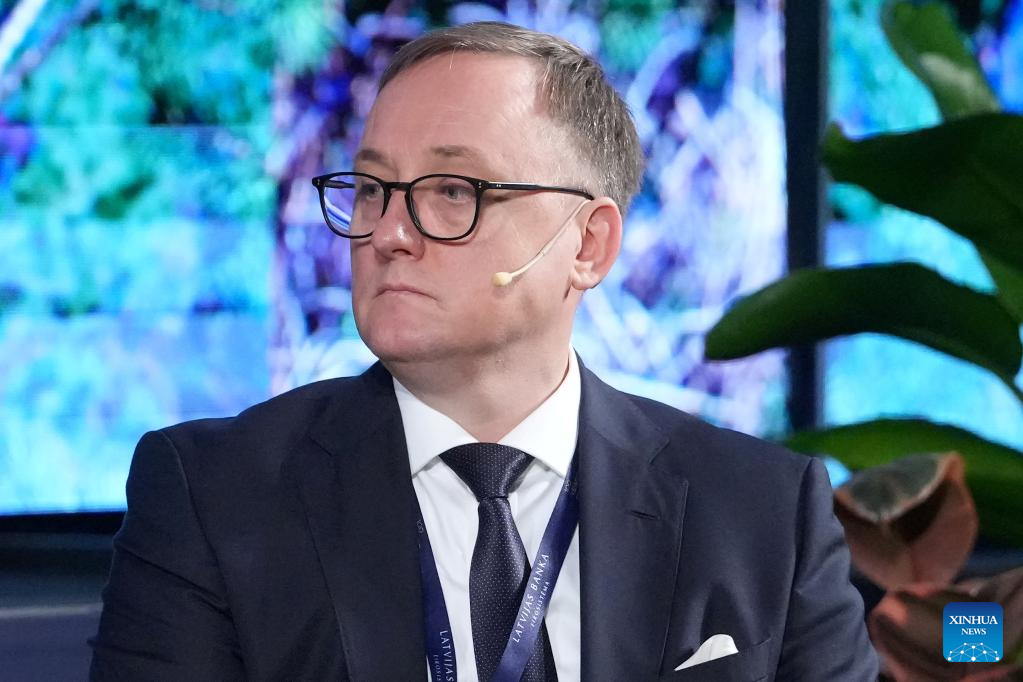Bank of Latvia Governor Martins Kazaks attends a conference hosted by the Latvian central bank in Riga, Latvia, on Nov. 3, 2022. Leading economists who spoke at the conference in Riga on Thursday foresaw a mild recession in the eurozone but warned that it will not suffice to curb inflation. (Photo by Edijs Palens/Xinhua)