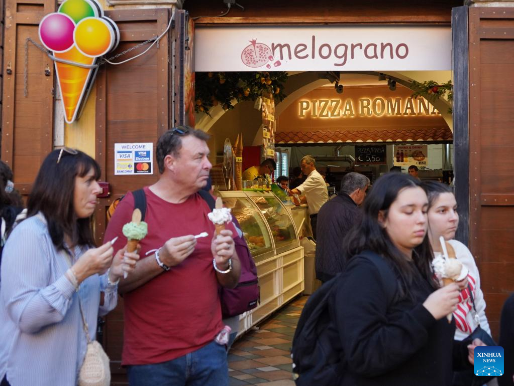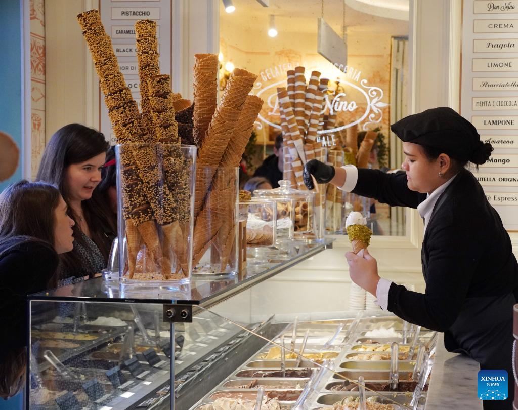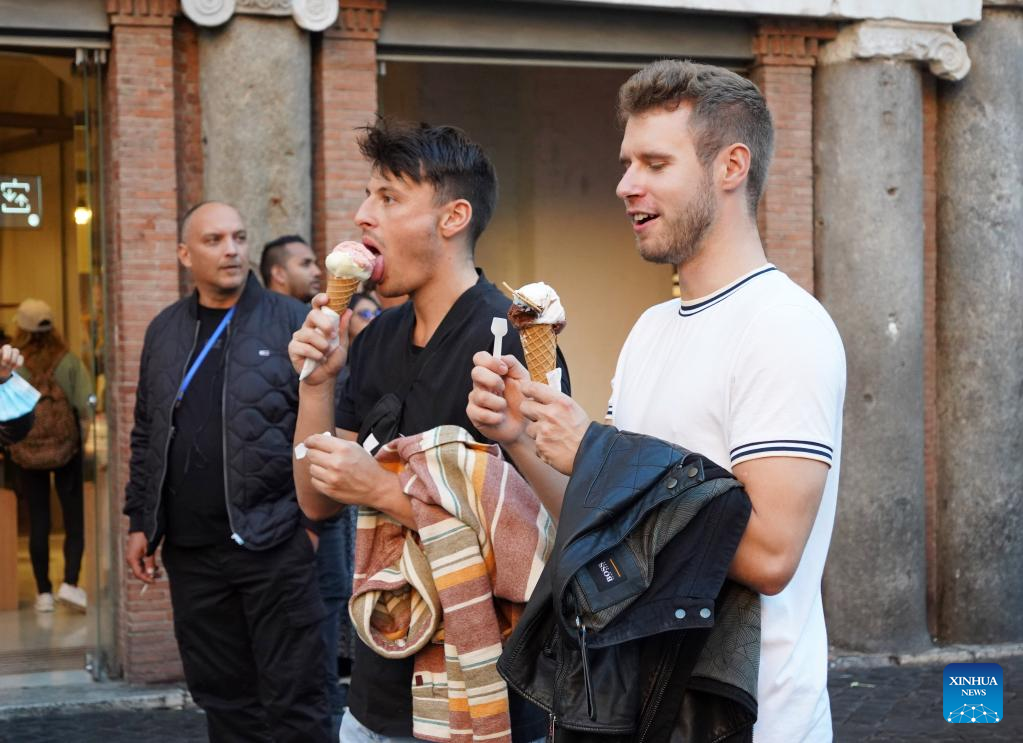 People buy gelato at an ice cream shop in Rome, Italy, Nov. 11, 2022. Large swathes of northern Italy have this year experienced the hottest October since records began in 1800, Italy's National Research Council said Tuesday. (Xinhua/Jin Mamengni)