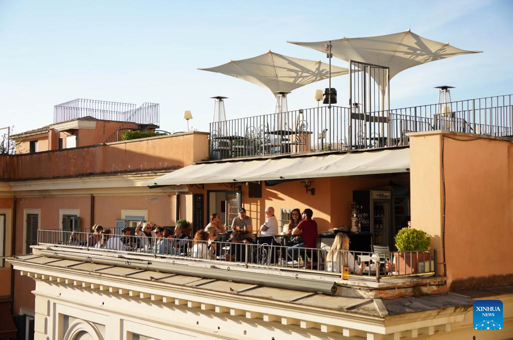 People visit the Terrazza del Pincio in Rome, Italy, Nov. 11, 2022. Large swathes of northern Italy have this year experienced the hottest October since records began in 1800, Italy's National Research Council said Tuesday. (Xinhua/Jin Mamengni)
