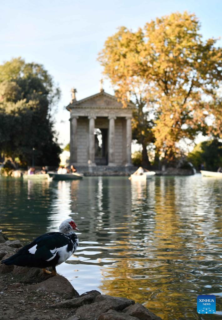This photo taken on Nov. 11, 2022 shows the autumn view at Villa Borghese in Rome, Italy. Large swathes of northern Italy have this year experienced the hottest October since records began in 1800, Italy's National Research Council said Tuesday. (Xinhua/Jin Mamengni)