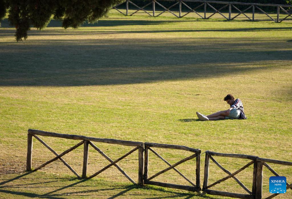A man enjoys his leisure time at Villa Borghese in Rome, Italy, Nov. 11, 2022. Large swathes of northern Italy have this year experienced the hottest October since records began in 1800, Italy's National Research Council said Tuesday. (Xinhua/Jin Mamengni)