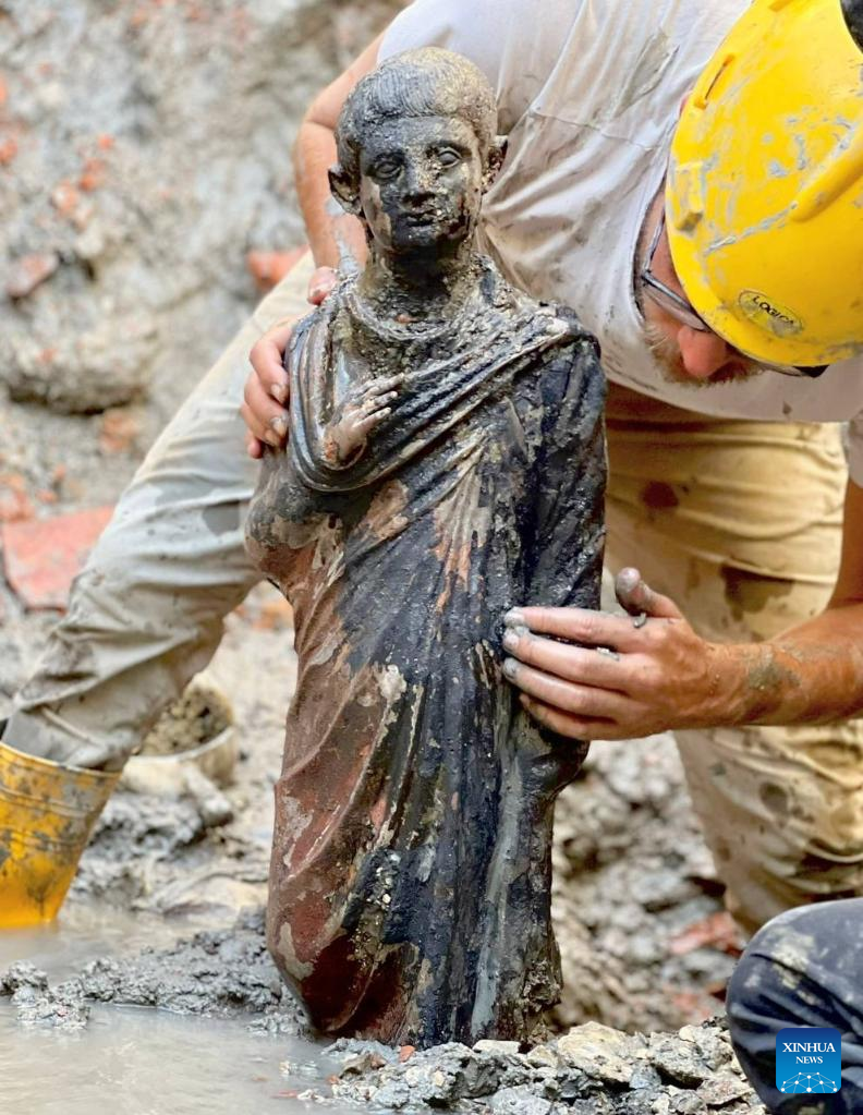 ROME, Nov. 8 (Xinhua) -- Hidden beneath bubbling mud in an ancient thermal spa, the discovery of 24 well-preserved bronze statues dating back more than 2,000 years could "rewrite history," the Italian Ministry of Culture said Tuesday.