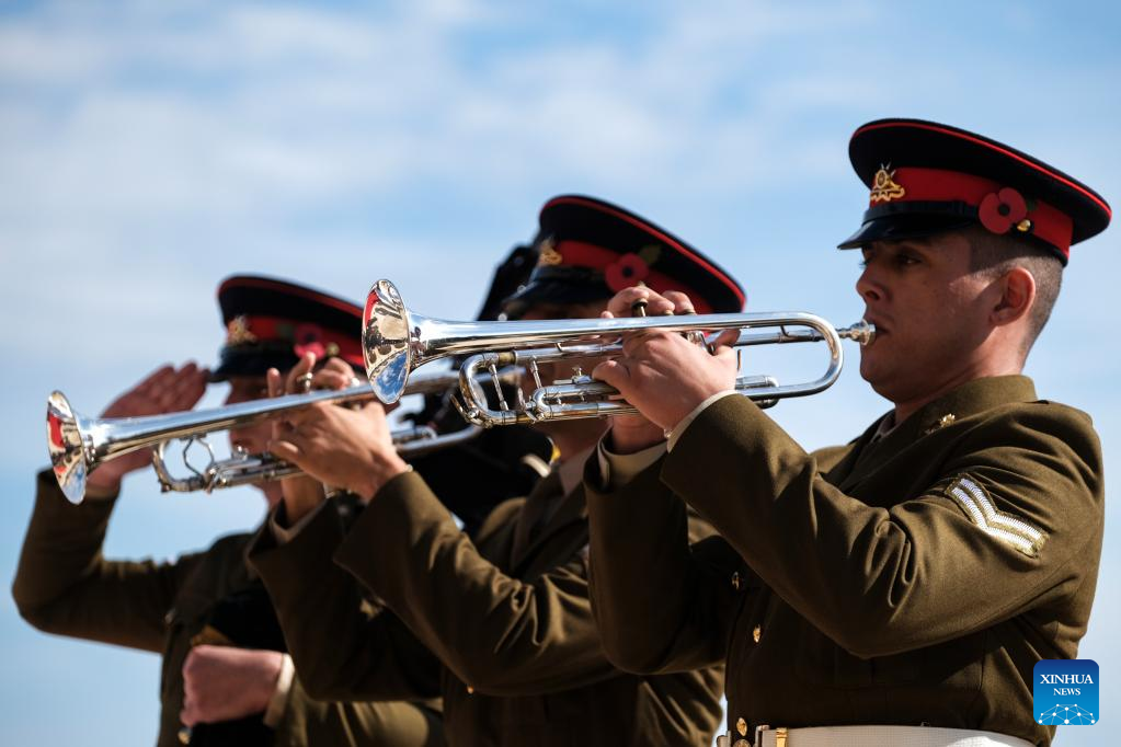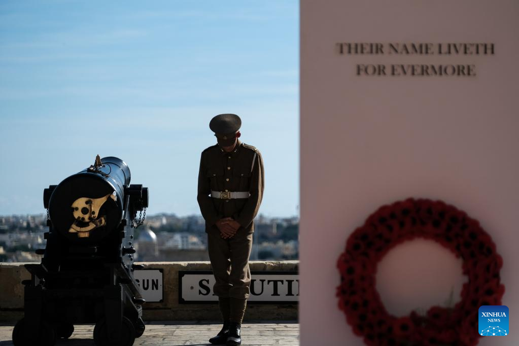 Members of the Armed Forces of Malta participate in a commemoration of Armistice Day at the Saluting Battery in Valletta, Malta, on Nov. 11, 2022. (Photo by Jonathan Borg/Xinhua)