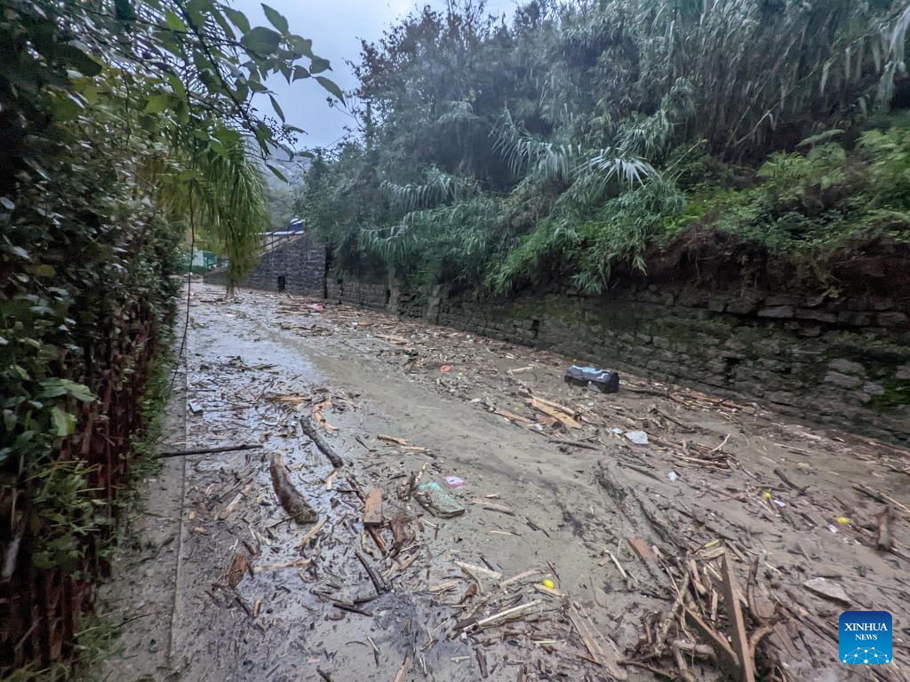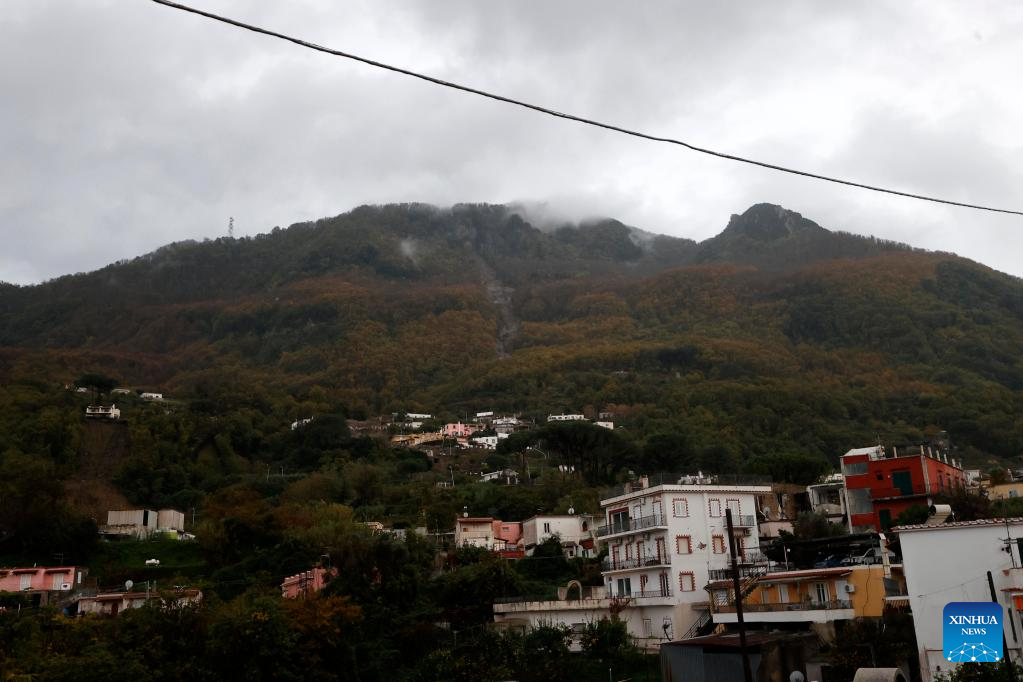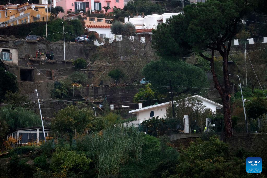 This photo taken on Nov. 26, 2022 shows the general view after a landslide on the island of Ischia, Italy. At least one person died and several others went missing in the island of Ischia in southern Italy on Saturday, after heavy rains triggered a landslide hitting several residential buildings, according to authorities and local media. (Str/Xinhua)