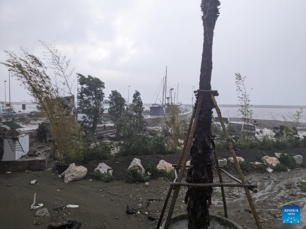 This photo taken on Nov. 26, 2022 shows general view after a landslide on the island of Ischia, Italy. At least one person died and several others went missing in the island of Ischia in southern Italy on Saturday, after heavy rains triggered a landslide hitting several residential buildings, according to authorities and local media. (Str/Xinhua)