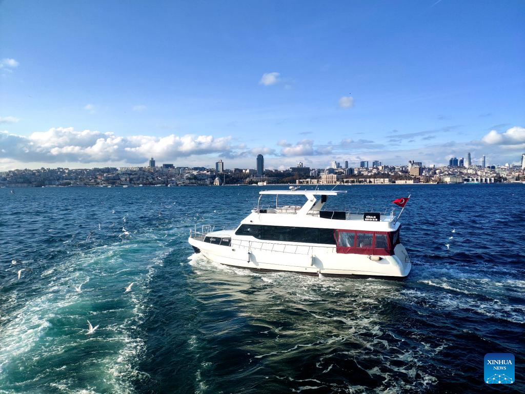 This photo taken on Nov. 27, 2022 shows a view of the Bosporus Strait in Istanbul, Türkiye. (Xinhua/Shadati)